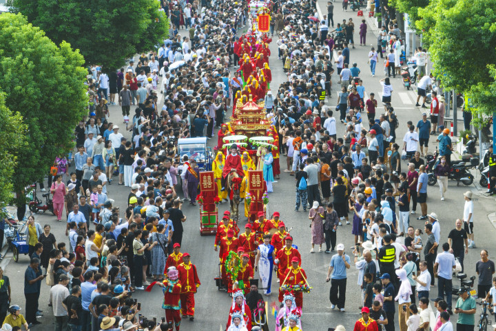 国庆中秋假期维嘉优配,神州大地车流如织,各地假日经济活力十足。10月6日,在浙江省宁波市鄞州区咸祥镇,民俗队伍巡游街巷热闹非凡。(新华社发)